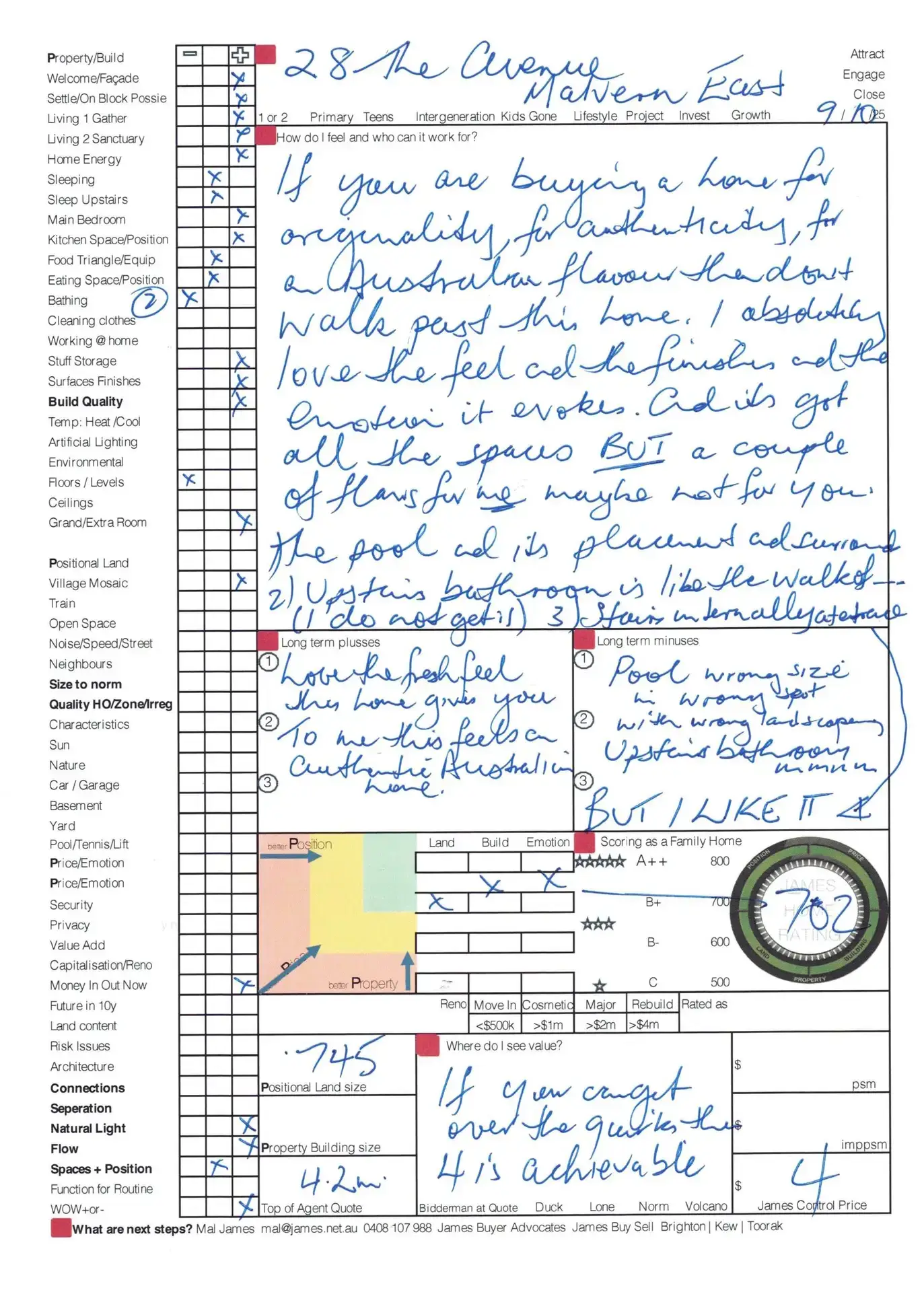 Each home is evaluated across a lot of PPP issues. From traffic noise to natural light, from ceiling heights to buyer emotion triggers—nothing is left out.