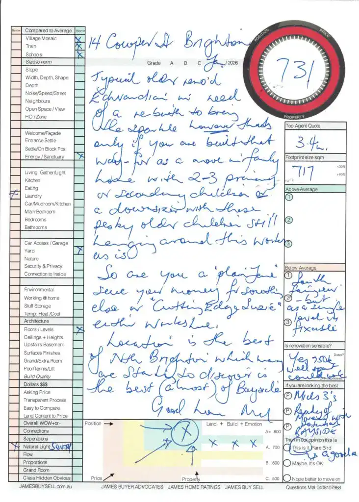 14 Cowper Street, Brighton — James Home Rating Snapshot