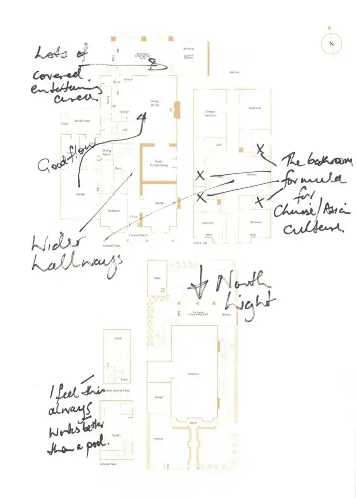 Property. Substantial, circa-8-year build with wider hallways, an internal lift, and a strong “lock-up and live” spec. Upstairs: four ensuited bedrooms plus retreat—excellent for privacy, guests, or multi-gen living. Ground level flows to enclosed/alfresco zones; out back the studio + cellar combo is a smarter everyday asset than a pool for many. Tone skews a touch clinical/soulless; softening materials, colour and landscape would lift warmth without major spend.