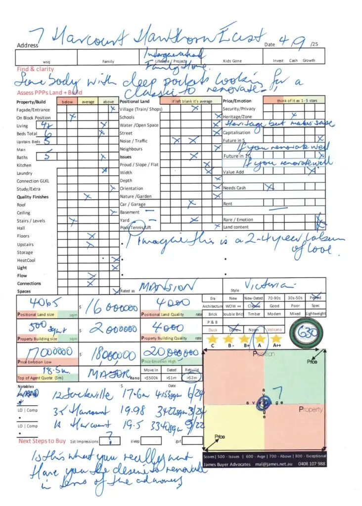 This is real local knowledge. No shortcuts to working at James. Visiting on/off markets daily. Making value assessments for our clients