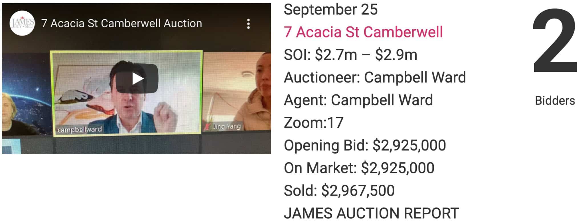 Till lockdown is over, we will build this page towards 100 selected zoom auctions over $2m and we will publish every result, till we are clear on what is truly happening in our vaccinated Top End Inner Melbourne family home market.